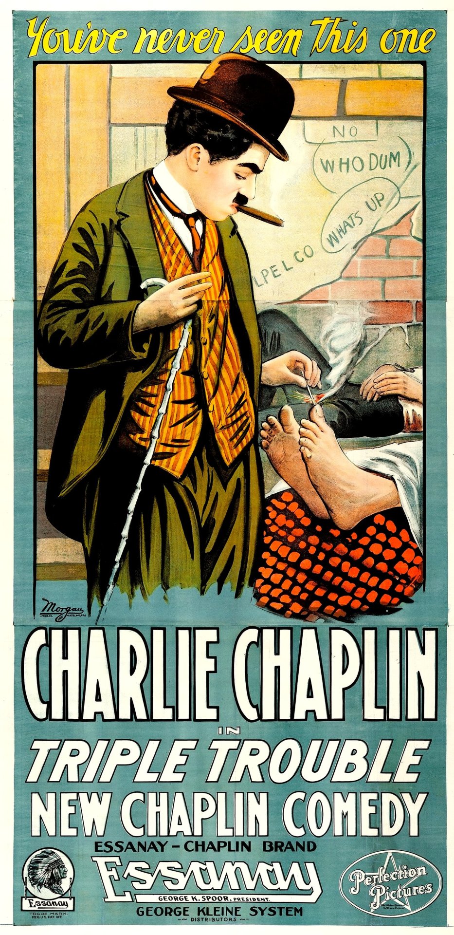 Just prior to Triple Trouble’s release, Chaplin took out a trade magazine advert vociferously objecting to its existence and Essanay’s disingenuous publicity touting it as new product. However, his attitude apparently softened over the years, as 50 years later he thought enough of it to include it in his official filmography, published in his autobiography. Triple Trouble can be found in all the restored Essanay collections as an extra alongside Carmen. David Shepard gave his 1990s restoration a piano score by Eric James, while its latest HD incarnation features a score by the Mont Alto Motion Picture Orchestra. As with Carmen, the latest BFI set includes an exclusive second recut UK reissue version, Charlie’s Triple Trouble (10min). It has no actual musical score but is accompanied by a synchronised soundtrack featuring sound effects and a humorous voiceover by comedian Tommy Handley.