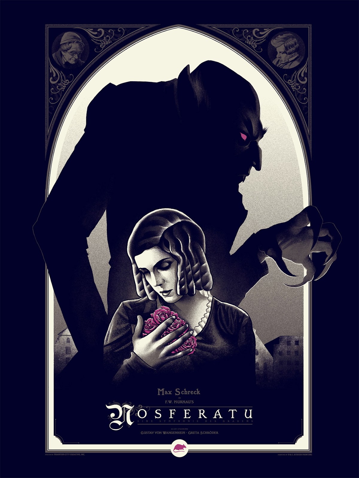 The terror begins when a young man sets out on a business journey, unaware that his client is the dreaded Count himself. It ends when the man’s brave wife lures the blood fiend to a night of love… and detains him until the dawn’s deadly rays bring his doom. In between are a series of shocking jolts, not the least being actor Max Schreck’s astonishing performance as one of the most loathsome beings ever seen on screen. His body bent, his skull-like head misshapen, his fingers long and claw-like, he’s the incarnation of evil and menace – a nightmare in wizened flesh.